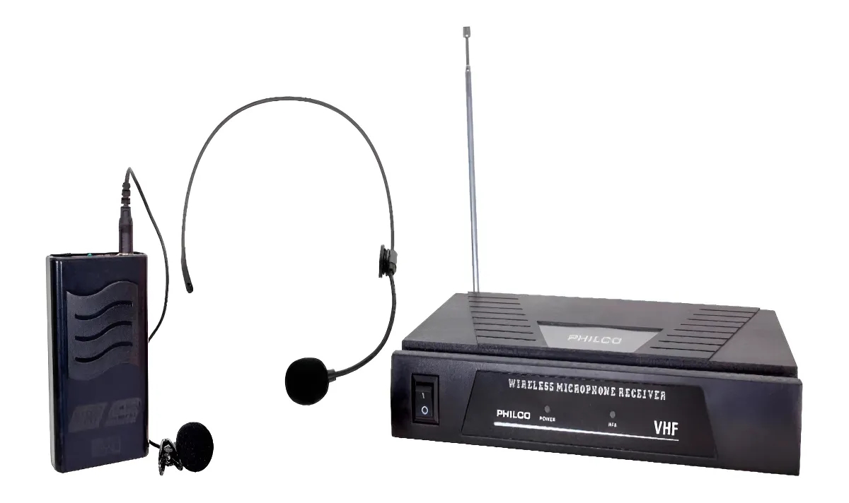 Marca PHILCO Modelo WM210 Micrófono Inalámbrico Vhf 2 En 1 Cintillo/solapa Color Negro Conector/es de salida: jack 6.3 mm