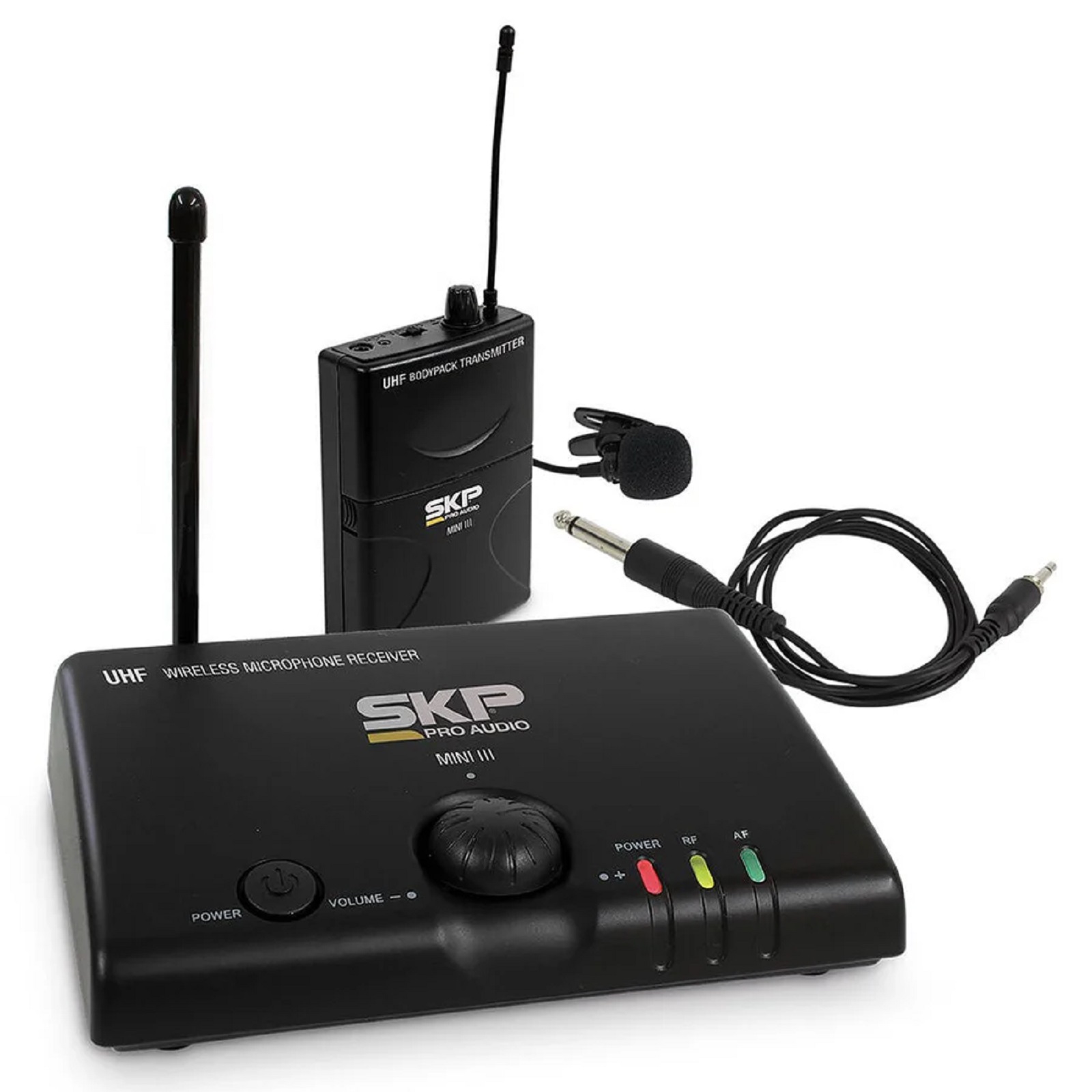 Marca SKP Modelo MINI III Frecuencia portadora: UHF 600-900 MHz Rango dinámico: > 900dB Distorsión armónica total: <0,5% Respuesta en frecuencia: 40Hz-15KHz.