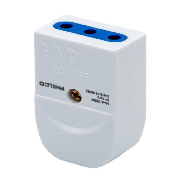 Marca PHILCO Modelo 78553 Enchufe hembra 2P + T Blanco Voltaje y corriente: 250V ~ 10A Potencia: Max. 1500W